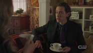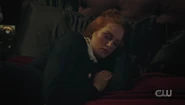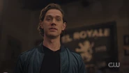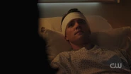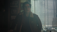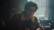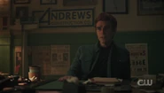 Jughead visits Doc at the sheriff station. He has no recollection of attacking Kevin. One minute, he's hammering, and the next, he's standing over Kevin, getting ready to take another swipe at him. It was as if someone put the idea on his head. When Jughead asks who, Doc recall that a man approached him with a British accent.