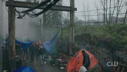 Archie's arrives outside of Pop's to find Jughead, Tabitha, Toni, and Frank not only cleaning up the vandalized micro house, but they've brought the second house and have painted it to honor the Whyte Wyrm. Archie fears that in a few hours, someone will simply vandalize it again, but Tabitha will simply repaint them, as she refuses to give up. Jughead then approaches Archie and tells him that he doesn't think Doc attacked Kevin. Before he can reveal who is truly responsible, they are joined by Percival, who reveals that the houses won't be necessary, as he took it upon himself to encourage the homeless to move on and start over somewhere else. When asked how he arranged that, Percival credits his "power of persuasion." Toni doesn't believe him, so they go to see for themselves and discover that Sketch Alley is completely abandoned.