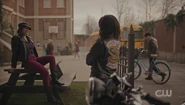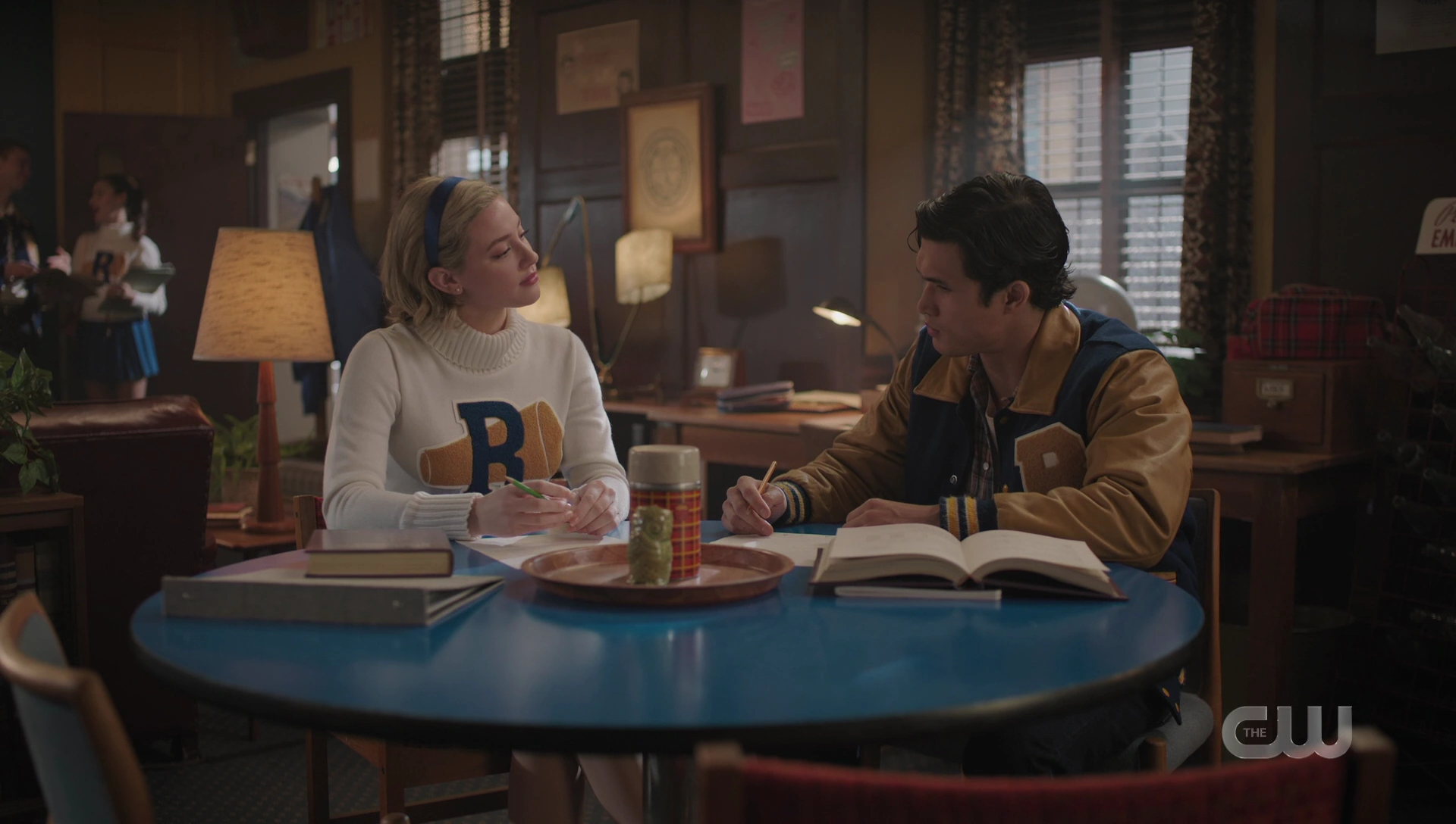 Ever since Featherhead refused to publish her Emmett Till article in the Blue and Gold, Toni's been keen to start a literary society for Riverdale's black students, a club that publishes a journal focusing on black voices and writings. Tabitha and Clay both agree this is an amazing idea. Toni gave up cheerleading after joining the Vixens for the wrong reasons, that being her crush on Cheryl, though their relationship has ended. Clay wonders what happened, to which Toni replies that they're too different. Cheryl's rich, white, and a Blossom. A relationship between the two of them would be impossible, though Clay disagrees. He and Kevin are also very different, and everything's a conversation, but they're up to getting to know each other. While Toni understands where he's coming from, she reminds Clay that he and Kevin are both preppies and starting off on the same foot. Clay admits that this is true and says that the effort one is willing to put in is dependent on how much you like the person.