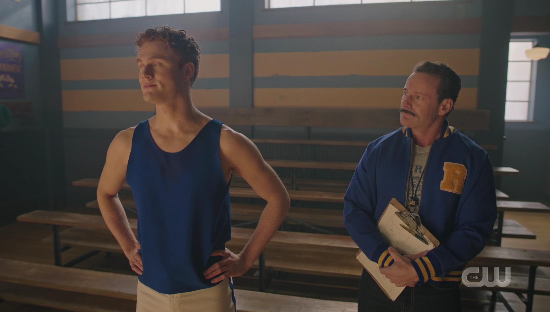 Betty reveals to the gang that she joined the Vixens, and Veronica shares that she now owns the Babylonium. Whilst gathered in the lounge, Archie enters with Riverdale's latest Bulldog recruit, Reggie. Cheryl introduced herself and says they'll be working closely together, though Reggie seems more interested in Betty, despite Veronica's obvious interest in him. She asks if he likes the movies, and when he says that his town doesn't have a theater, Veronica reveals that she owns the local theater and welcomes him to stop by or even board as a new hire. Reggie appreciates the invitation, but he's only come to play basketball and then asks for directions to the gym.