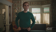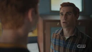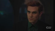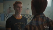 Archie returns home, where he's confronted by his mother after Penelope stopped by and informed Mary that Archie and Cheryl had sex. She tells him to go upstairs and change into his suit because they're going to the Blossoms' for dinner to figure out a path through this mess that he and Cheryl made.