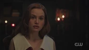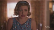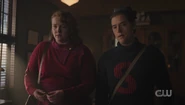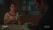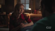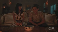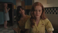 Toni warns Cheryl against running off with Archie to get away from her family. Toni insists it won't work. She knows because at one point, she was Cheryl. Toni asks if she loves Archie, to which Cheryl replies that Archie is a great person with the best heart. And he's nothing like her family. But Toni tells Cheryl that eventually she's going to have to look in the mirror and accept who she really is.