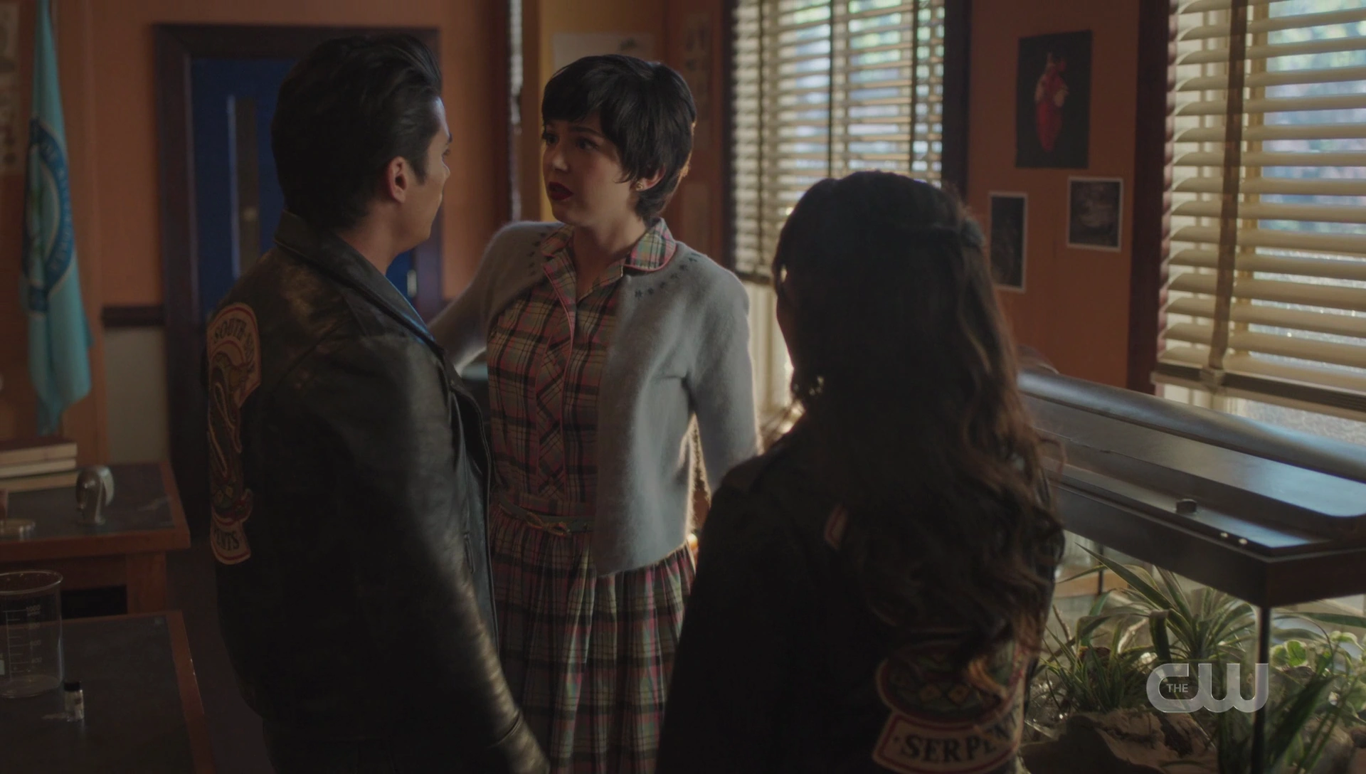 Fangs reveals to Toni that Midge might be pregnant, though they're not entirely sure. Needing to confirm the pregnancy, Toni devises a plan to gather in the biology lab at midnight, where she will gather supplies to conduct her own pregnancy test.