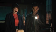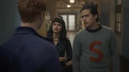 Jughead heads over to the Pembrooke, where he informs Veronica that Ethel is staying at the Sisters of Quiet Mercy. Jughead feels as though he failed Ethel, but Veronica insists that he saved her. She then grabs Jughead's hand and they kiss.