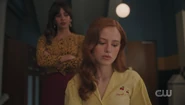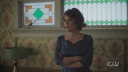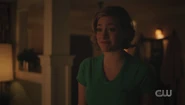 Archie and Mary return home, where Mary expresses how relieved she is to be out of Thornhill. She accuses Clifford of being a hypocrite and war profiteer. He sold maple syrup to the army at a premium during the Korean War. She's always kept the Blossoms at a distance, but now, thanks to Archie, they'll be linked for the rest of their lives. After having a spoken with Clifford and Penelope, they've decided that it's best for Archie and Cheryl to get married, but first they must both take a compatibility test and also determine if they're psychologically ready for marriage. Mary doesn't want this, but given the circumstances, she doesn't believe they have any other choice, telling Archie to think about Cheryl's honor and reputation.