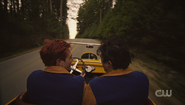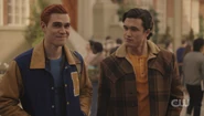 Archie and Reggie make their way back to the car. On the path back, Reggie reveals that the night he took Veronica out, he didn't go riding on the freeway afterward. He actually went home to see his parents, as he was homesick, though he was too embarrassed to admit it. Archie has always felt a bit home sick ever since his dad left for Korea. Archie's dad was his best friend, and he hasn't really had one since, though Betty and Jughead are the closest friends he has. As for Reggie, his folks are working hard as always. They miss him but are happy to see him with good people. By the time Archie and Reggie return to the car, they discover that Betty and Veronica are gone.