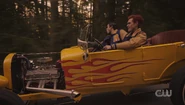 While waiting for Archie and Reggie to return, Cheryl pulls up alongside with Toni and Midge, who are all headed to Fangs' performance and offers them a ride.