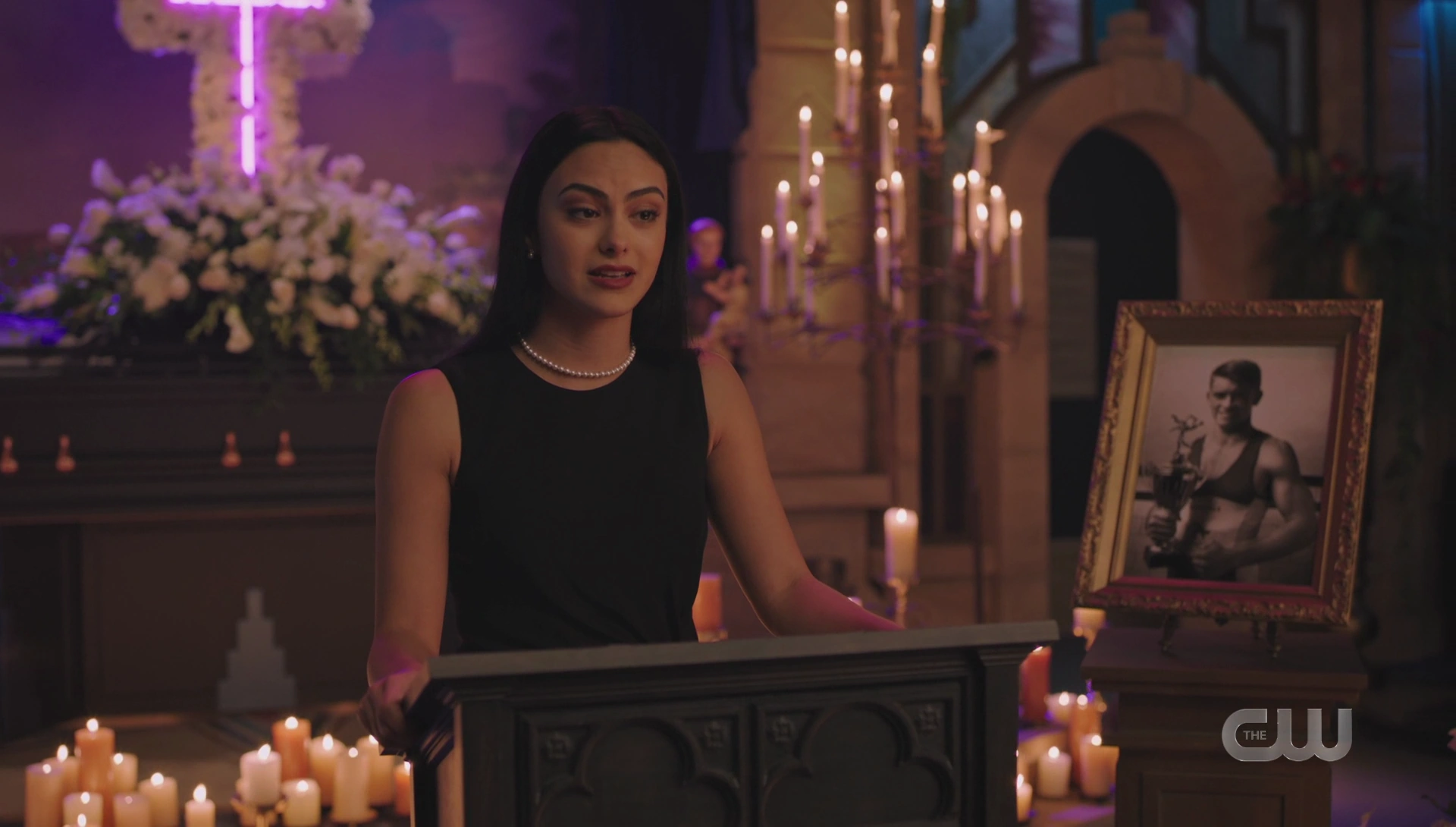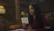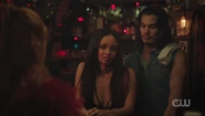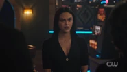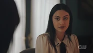 Short for Toni, the Riverdale Council opens up the floor for community members to ask questions and give announcements. Abigail and Nana Rose are in attendance, where Abigail recognizes Archie as a descendant of Archiebald Andrews. After Archie asks for an extension on the permit for the dumpsters outside of his house, Veronica announces that her father is dead. She's fine and welcomes them to rejoice. Percival Pickens then takes the time to introduce himself to the community. In the earliest days of Riverdale, Abigail recalls how the Blossoms had a fellowship with the Pickens family, which Nana Rose reminds her did not end well. Alice welcomes Percival, who reveals that he's related to General Pickens and that with a little bit of luck and hard work, Riverdale could become one of the greatest and prosperous towns in America. He has many ideas he'd like to share with the council. However, before he can finish, Toni arrives after stopping a gang war from erupting. Abigail recognizes Toni as the spitting image of her beloved Thomasina and looks to Britta to tell her everything she knows about Toni.
