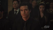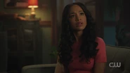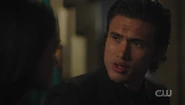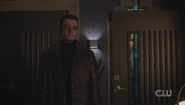 Betty reveals to Archie that TBK visited her at the office, and what scared her most is that she couldn't see his aura. Maybe he's in her blind spot, she suspects. But all she knows for sure is that she keeps getting headaches. Archie reveals that something strange happened to him too. He fell through the landing earlier and got hurt, as if his powers are fading. If TBK is Betty's blind spot, she questions what is Archie's kryptonite. Archie recalls the piece of palladium that was given to him by Dennis earlier and suspects that it's the cause of his power loss, handing it over to Betty, who warns Archie that TBK is a jealous killer and that he should be careful, though unbeknownst to the two of them, TBK is listening to their entire conversation.