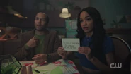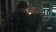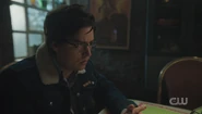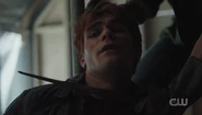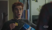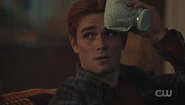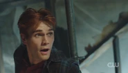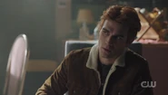 Upon learning that Jughead has lost his ability to hear, Archie communicates with him through index cards and asks if Jughead has experienced anything weird since the explosion. Archie claims that he's just curious, but Jughead isn't convinced.