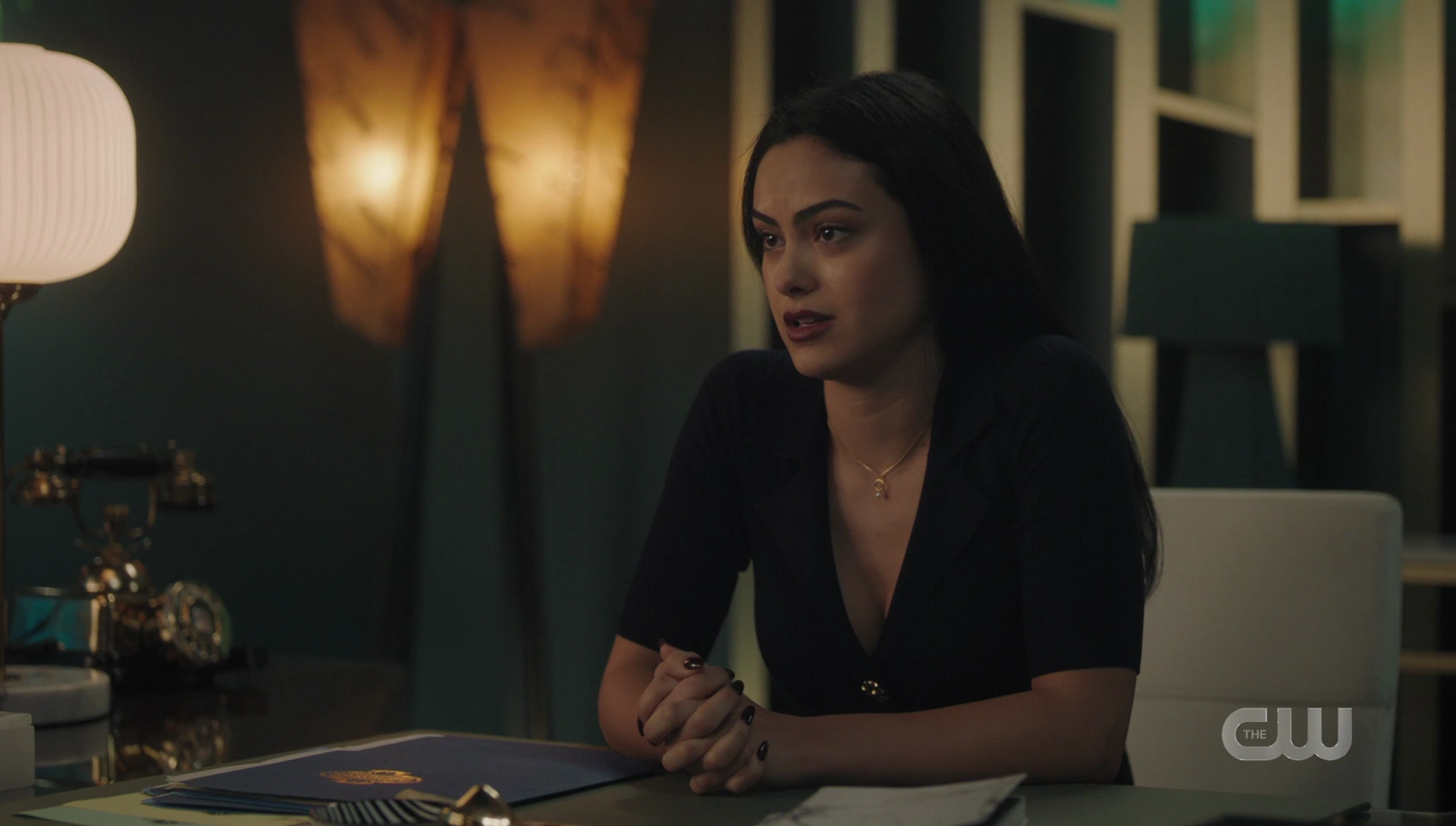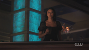 Hermione proposes that she and Veronica recreate a version of their conversation from last night, on camera, minus the part where she admits to killing her father. All of that was real for Veronica, and she is reluctant to retell it for cameras, but agrees nonetheless.