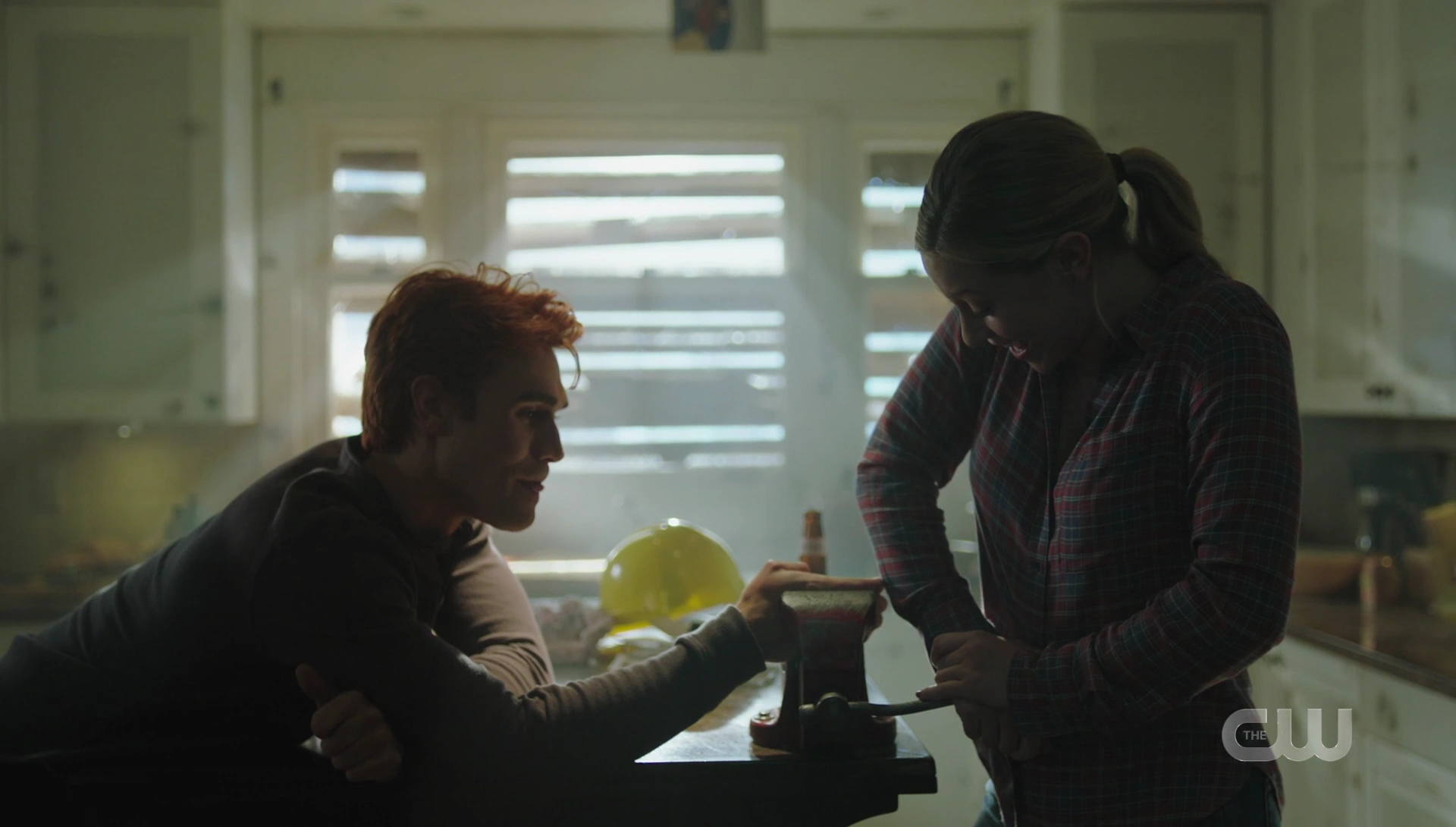 Archie and Frank have assembled a crew, consisting of Tom Keller and Riverdale residents, to help rebuild his house. After the safety meeting, Betty uses a bench vise on Archie's hand to test the limits of his invulnerability, but he doesn't appear to feel a thing as she tightens the vise. All of Archie's childhood dreams of becoming a superhero seem to be coming true. Although, with Jughead being the fourth closest to the explosion, Betty begins to wonder if he's okay, and Archie agrees to check up on him.