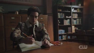 With Tabitha still at the council meeting, Jughead gives another attempt at writing, but nothing comes to him. So instead, he decides to take a ride out on his bike.