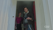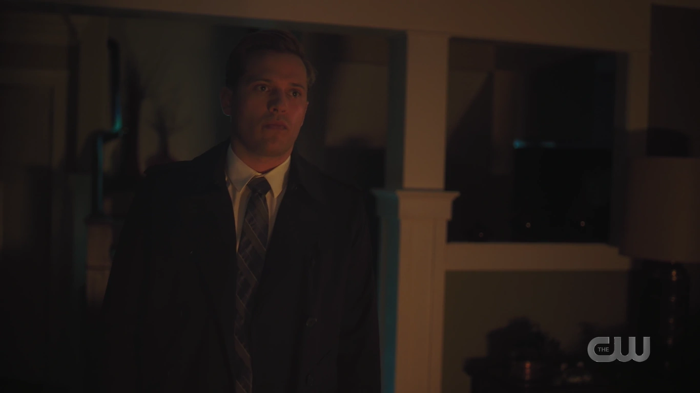 With Jellybean asleep and their parents calming down in the other room, Betty and Jughead rehash their findings. They suspect that the Auteur has been in their house many times before. And given the supposedly privileged information he had about them and their friends, Betty suspects that the Auteur has also been listening to them, alluding to the fact that Charles may be the Auteur. Not only would he be able to bug their phones, he’d have the resources to kill Joan in the outside world as well as Bret, who was locked up. With that, they decide to return to the house.