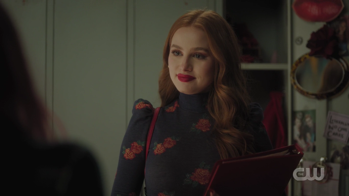 Cheryl returns home from her mini-vacation to find Nana Rose by the fireplace morning the loss of the entire Blossom underworld. Apparently, the Blossom board of trustees poisoned themselves. A suicide note in Cricket’s pocket stated that they wanted to sacrifice themselves to atone for all the ancient Blossom sins. Cheryl realizes this is the work of her mother and calls her out from behind her hidden compartment behind the cupboard. Penelope says to consider this an early graduation present, and with the Blossom board of trustees no more, Cheryl now has full control of all Blossom holdings to do as she pleases.