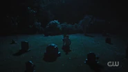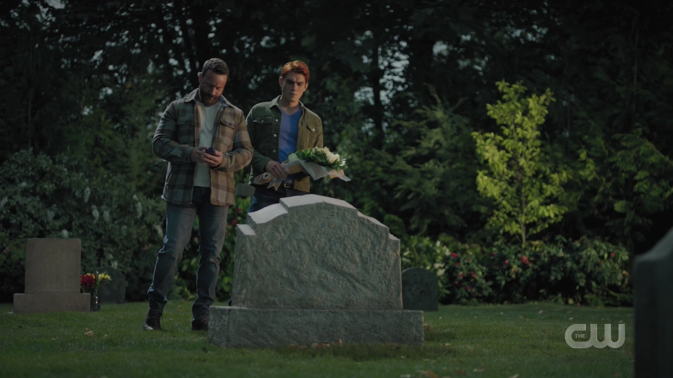 Archie heads to his father’s grave. He can’t make sense of why the auteur would re-enact the Black Hood attack at Pop's Chock'lit Shoppe when his father had been nothing but kind to the town of Riverdale. He exclaims that it’s not right.