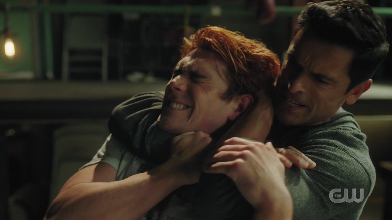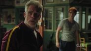 Hiram confronts Archie at the community center. He puts Archie in a headlock for cheating on Veronica with Betty and sarcastically asks what kind of man would do such a thing. He tells Archie that he’s a disgrace and snidely remarks that the "apple doesn’t fall far from the tree." Archie becomes enraged and charges towards Hiram, but Tom intervenes. Archie then kicks Hiram out of his gym.