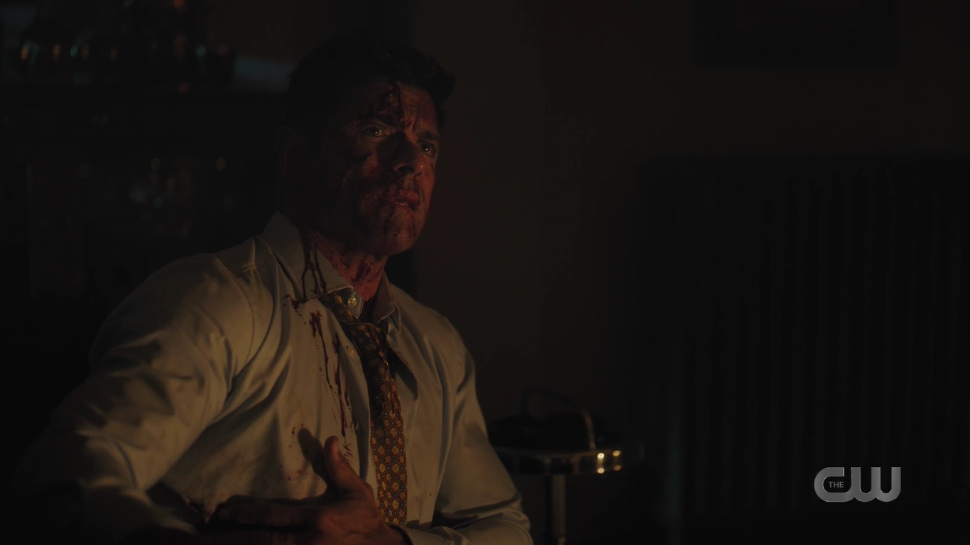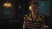 Veronica finds her father inside his study, bruised and beaten after being ambushed outside the mayor’s office. Hiram asks Veronica to get the first aid kit but she refuses. She goes on to compare him to a dog in need of training and how when a dog soils the carpet, the appropriate response is to rub its nose in the carpet. She then asks how many times will he have to be beaten by younger and stronger men for him to learn that it’s time to move on. She advises him to exit gracefully and with dignity rather than dying in the street. Veronica then returns to her room, where Hermosa awaits, having listened to the entire exchange. She replies that maybe Veronica is a Lodge after all. Veronica questions why Hermosa had her men beat their father so badly. Hermosa replies that he needed to be taught a lesson.