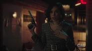 Hiram reprimands Veronica and Hermosa after learning that they have scared off his associates with false threats about the FBI and taken control of Lodge Industries’ board. They tell their father that it’s time to retire and that his reign is done. Hiram explains that reverting back to his true nature has given him back his strength and stamina. Veronica retorts that this isn’t how medical science works. Nevertheless, Hiram says that all he needs to do business is his fists and his gun. He then orders them both to exit his office.