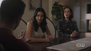 Toni approaches Cheryl at her locker after overhearing her run-in with Ms. Bell. Toni then apologizes for not going home with Cheryl after prom. Cheryl sympathizes, as she doesn't wish to make Toni choose between herself and family. Cheryl then tells Toni that she has Blossom family business to attend to.