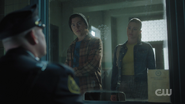 Betty and Jughead visit Bret at the Lodge Detention Center the following day as planned. However, they discover that he was killed in his cell last night and that his body was taken to the morgue.