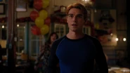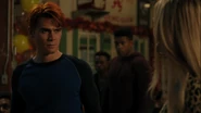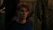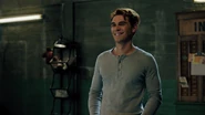 Thanks to Veronica, who put in a to-go order at the country club, the community center is stocked with food, enough the feed the town. Archie informs Munroe of his plan to deep fry a turkey, which his dad has done every year. FP interrupts with some alarming news. He’s under orders by the mayor to shut Archie down for Thanksgiving. Hiram's doing it to punish Veronica, to get her to spend the holiday with him. FP tried to fight him on the matter, but Hiram insisted. However, if he was in Archie’s place, he’d go through with his plans for Thanksgiving dinner for the community, which is exactly what Archie does.