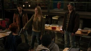 Darla demands that Archie admit to beating up Dodger. Archie will admit to it only if Darla agrees to let everyone else goes when he does. She agrees to his terms, but before Archie can admit what he’s done, Eddie, Toby, and Malcolm all claim they’re all responsible for putting Dodger in the hospital, but Darla isn’t convinced. Just as she is about to shoot Archie, the deep fryer explodes, causing a distraction long enough for Archie to disarm Darla. As Archie takes out her sons, Munroe orders the kids into the office. Veronica assists in the take down by pinning Bill Dickenson to the table by stabbing his hand with a carving fork. Mary grabs the gun, bringing the altercation to a head. She gives Darla, Bill, and Fagan five seconds to leave the center or the else. The three of them scurry as she starts counting down. As they leave, Eddie and Toby lock the door behind them. Archie, Mary, Veronica, and Munroe then investigate the cause of the explosion.