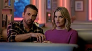 Hiram and Hermione enter Pop’s for a Turkey dinner. Pop Tate tells them to take a seat as he gets everything prepared. Across the diner sits Alice and FP, who invites Hiram and Hermione to join them.