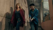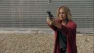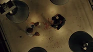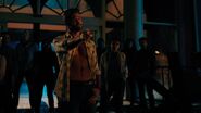 Betty calls Charles and tells him that she’s inside the hotel. Charles instructs her to get out as Governor Dooley is prepared to send in a group of mercenaries. Betty tells Charles to tell the mercenaries to stand down as there’s a bus load of civilians headed their way.