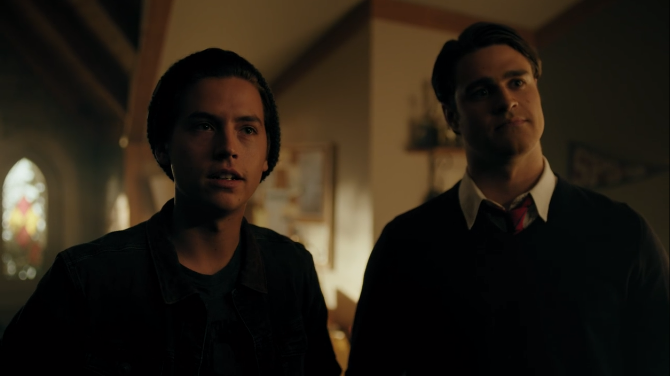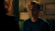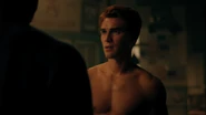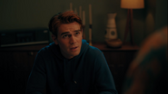 Mary wants Archie to come back to Chicago with her. He can finish out his senior year there, but Archie would prefer to stay in Riverdale. His best bet at going to college is through a football scholarship. Otherwise, he won’t be able to afford it, or so he thinks. Mary reveals that she and Fred started a fund for Archie when he was born. She was reluctant to tell him because she figured he would want to use it on the community center. As noble of an idea as that may be, Mary doesn’t believe it’ll make much of a difference in Riverdale given all the crime. Riverdale isn’t safe. However, Archie has no intentions on giving up on the town like his mother did. Mary claims she moved to Chicago because she couldn’t find a job in Riverdale. Archie, much like Fred, doesn’t believe Riverdale is a lost cause. Archie refuses to leave and he assures his mother he’ll make a difference. Archie heads upstairs into his room, where he lets his frustrations out on a punching bag before grabbing a bandanna and a baseball bat and sneaking out his window.