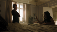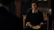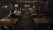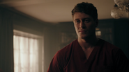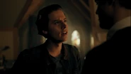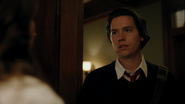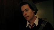 Bret reads his story in front of the group. When Mr. Chipping asks for the group’s thoughts, Joan and Jonathan nervously agree that his story was astonishing. Jughead on the other hand was unimpressed, much to Donna’s amusement, which angers Bret, who goes on to take aim at Jughead’s story, ripping it apart before Mr. Chipping steps in. After poking at Jughead’s story, he sets his sights on Jughead himself, referencing his troubled past. Jughead threatens Bret, forcing Mr. Chipping to intervene. He explains that Stonewall Prep has no tolerance for fighting.
