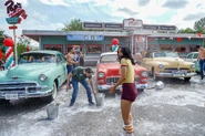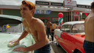 Archie, Munroe, Reggie, Kevin, Betty, and Veronica share ideas on how they could to come up with the money to pay for the renovations for they gym. Veronica offers to front the money, but Archie doesn’t want anymore handouts. Kevin suggests a charity concert while Betty recommends a bake sale, which gives Veronica a better idea. She comes up with a car wash. Veronica organizes the event outside Pop’s diner. She collects the proceeds of the car wash as Archie, Munroe, Reggie, Kevin, and the Bulldogs, all shirtless with the exception of Kevin, wash the local women’s cars. Unfortunately, by the end of the day, they’ve only made $400 out of the $40,000 needed for renovations. Veronica proposes a couple more ideas, but none worth pursuing.