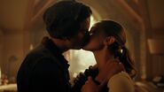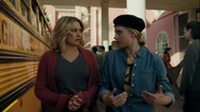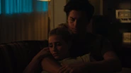 Betty, FP, and Jellybean help Jughead move into his room at Stonewall Prep. FP and Jellybean leave Jughead and Betty alone so they can say goodbye, suggesting the two of them go look for the vending machine to buy her some Triple Bubble. Once FP and JB are gone, Betty insists that she’s fine with Jughead attending Stonewall and they kiss.