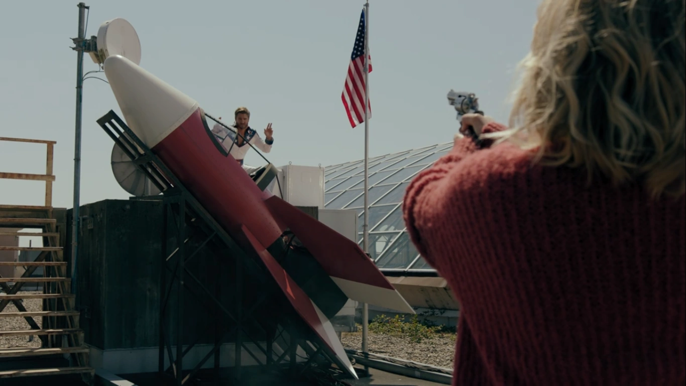 Alice holds Edgar at gunpoint on the roof as he prepares to take off in his rocket. Edgar asks if Alice is familiar with the story of the prophet of Elijah. He was seized by a whirlwind and lifted into the sky in a chariot that of fire. Elijah ascended, and Edgar intends to as well. He reaches for the gun hidden in his back holster, but Alice shoots him before he can shoot her. Betty hears the gunfire from the stairwell and rushes to the rooftop, where Edgar’s body lays on the steps.