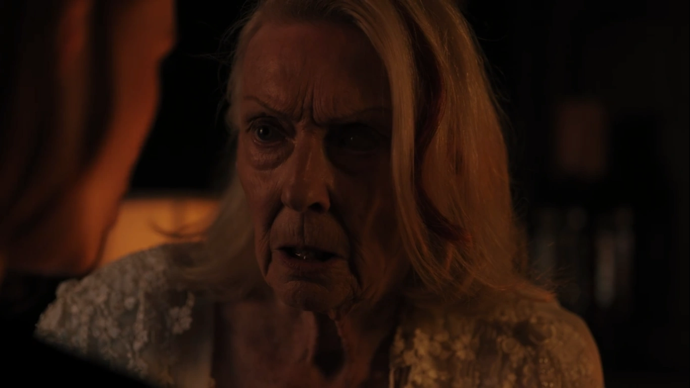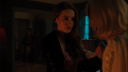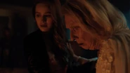 While making out in bed at Thistlehouse, Toni and Cheryl are startled by odd noises, which they presume to be Nana Rose’s doing. It worries Toni to leave the twins with her when they’re at school. She suggests hiring a caretaker, but Cheryl refuses to have a stranger in her home. She and Toni rush out of bed at the sound of Nana Rose’s scream. They find her standing by the fireplace. She mistakes Cheryl for her mother Penelope and tells her how she thought she saw the triplets burning in the fire. Cheryl explains that she’s not her mother and that Juniper and Dagwood, the twins, are sleeping soundly in their nursery.