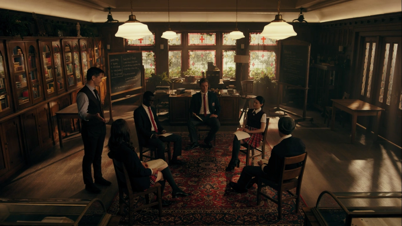 Mr. Chipping cancels the seminar he initially had planned for Jughead, Bret, Donna, Joan, and Jonathan and instead they will be having an evening session. They’ve each been given a copy of the same mysteries with the final chapter omitted, in which the murderer’s identity would be revealed. Their each to write their own ending. They’ll read all the endings and decide the winner by vote. The exercise proves that there’s no single way to tell a story.