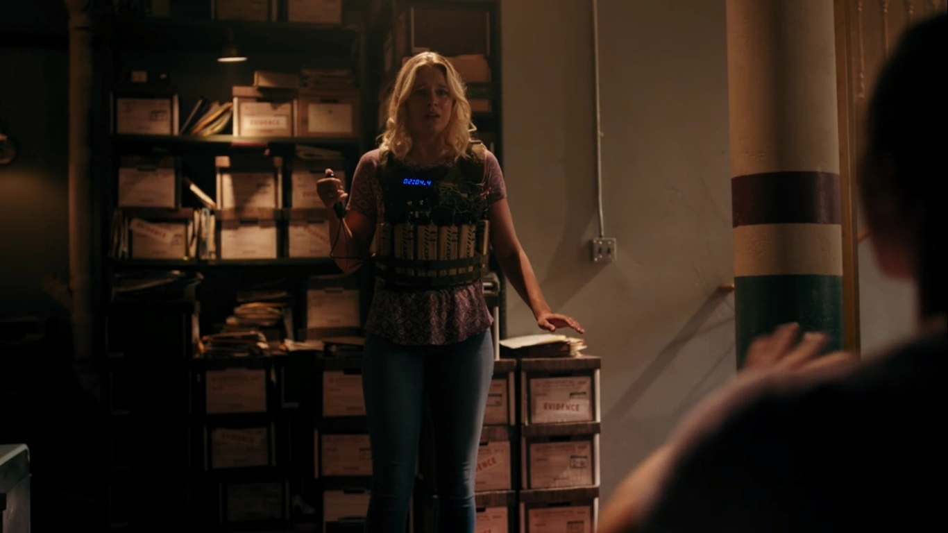 Polly’s holding a dead man’s switch, meaning if she lets go of the detonator then the bomb will explode. Betty promises Polly they’ll figure it out. There’s wires connected to the C4 on the bomb. Three are decoys that will trigger the detonator. They need to find the one that is linked to the firing circuit and battery. Betty cuts the yellow wire, which turns out to be a trip wire that causes the bomb to count down faster. Charles tells Betty that there might be a system override on the dead man’s switch. A pin connected to a chain that slides into the hole that goes underneath the trigger. However, Polly tells Betty that Edgar took the pin. With the bomb quickly counting down, Betty takes the bobby-pin out of her hair and inserts into into the switch to stop the bomb from exploding with two seconds to spare.