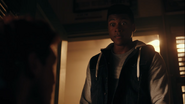 While writing their stories, Bret tries to get a rise out of Jughead. First throwing a paper ball at him and then asking about his placement in the Southside Serpents. He continues to pick at Jughead while Donna, Joan, and Jonathan watch. He mentions how Jughead's mom abandoned him and how his dad is a drunk. Through all this, Jughead maintians his composure. It isn’t until Bret mentions Jellybean that Jughead responds. He grabs Bret by his shirt and threatens him. While Jughead may not be as privileged as Bret, he has friends and family that care for him, unlike his opposer.
