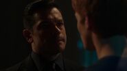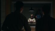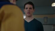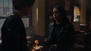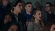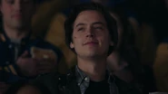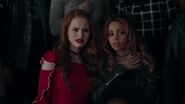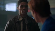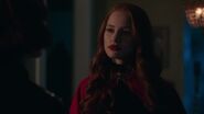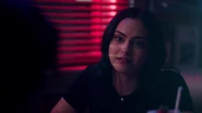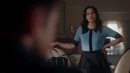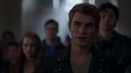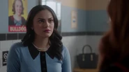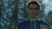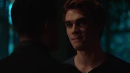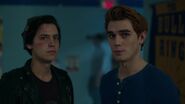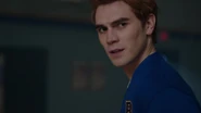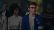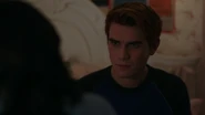 At the Andrews house, Archie, Veronica and Fred go over his schedule for the next three days. Veronica explains that her mother is doing an Eva Perón-like tour. Essentially shaking the trees one last time before election night. Veronica took the liberty of booking Fred right behind her, so that people know they have a choice. While Fred appreciates this for all it's worth, he doesn't believe it will serve him much good considering that everyone in town is under the impression that Hiram and Hermione saved Riverdale during the riots, that it was Sheriff Minetta who brought the chaos to an end. However, Archie and Veronica know the truth, that Hiram doesn't want to save the town, but take it over. Luckily, Veronica won't stop until Fred is elected mayor. Even if it means putting her own political missions aside, meaning she will no longer be running for student council alongside Archie, who then gets a call from Betty, telling him that Jughead is awake.