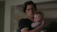 Jughead arrives at the Cooper house to babysit Juniper and Dagwood with Betty. During which time, Betty asks Jughead if he believes that evil can be past down. Her great-grandfather, grandfather and father were all evil murderers. Jughead claims that this was merely circumstance, but Betty begs to differ. She worries that the twins might even grow up to be murderers, much like her father. Jughead tells Betty that neither she nor the babies are evil, but Betty feels that being evil may be her destiny; something she can't control or understand. Jughead assures Betty that she's a good person.