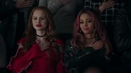 On the other side of town, at the Whyte Wyrm, Hiram calls a meeting with all his accomplices i.e. Penny, Penelope, Claudius, Malachai and Sheriff Minetta. It's been months in the making but the time has finally arrived. Hiram welcomes them all to New Southside. Penelope asks about Hermione, who Hiram explains can't be privy to certain machinations now that she's mayor. But the plan remains the same. The prison will soon be up and operational, with Claudius' drugs running through it. "Like brother, like brother", Penny comments. Malachai and his Ghoulies will be their soldiers and dealers, with Penny troubleshooting. And hopefully, doing a better job than she did of killing Jughead, Hiram remarks. However, as Penny explains, he wasn't breathing when they left him. Penelope reminds Hiram that he promised her a brothel, which Hiram intends to make good on. As for Archie, Jughead, Betty and Veronica, they are not of concern as far as Hiram is concerned as steps have been taken to tear them apart.