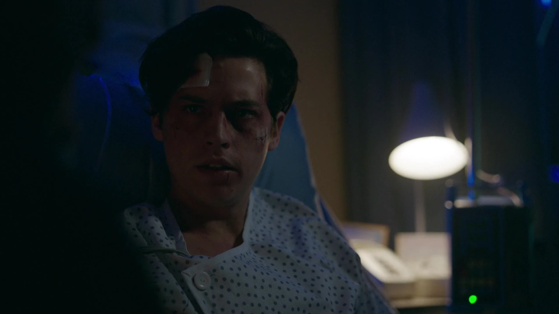 A dream sequence takes place in the opening scene. Betty, Archie and Veronica stand over Jughead's grave. Betty falls to her knees and tears fill her eyes as she begs Jughead to come back to her as their journey has only just begun. Jughead wakes up in a hospital bed. He calls out to his father, who sleeps in the chair next to his bedside. FP jumps to his seat at the sound of Jughead's voice. It would seem that some days have passed since Jughead was attacked and left for dead by Penny, Malachai and the Ghoulies. What Jughead did brought every Serpent FP had ever known out of the woodwork and Jughead would've been proud of them. It looked like they were going to win the war with the Ghoulies, but in the end, there were just too many of them.