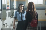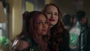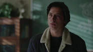 As they are headed to class, Toni tells Cheryl that the Serpent jacket looks good on her. Cheryl remarks that everything looks good on her. In that case, Toni suggests making it official. Meanwhile, Veronica approaches Jughead to inform him of insider information, which is that her father is making a play to buy the Whyte Wyrm. Veronica then learns from Jughead that FP was fired from Pop's. This saddens her as they won't be eating there anymore. Veronica explains to Jughead that she was going make a play to buy the Wyrm in order to torpedo her father's monopolizing of the Southside, but now she's thinking there's a better, smarter play here if Jughead trust her, and they move fast.