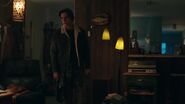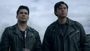 Jughead returns home to find his father drunk on the couch. It seems that FP has taken back up drinking. As for why he's drinking, he's been fired from Pop's by Hiram. Regardless, they have more important matters to attend to, like the fact that FP lied about the Serpents no longer existing when in actuality, they need help as they have been forced into living at the Wyrm. FP counters that what the Serpents actually need is to get out of town as fast as they can. He wasn't lying when he said that it was over. FP informs Jughead that it is time for them to skip town and move to Toledo, with his mother, however, Jughead refuses to leave, as Betty and the Serpents need him. FP refuses to see what happened to Jughead at the hands of Penny and the Ghoulies happen again. So they're leaving town, but he tells Jughead to pack light as they're only taking the motorcycles.