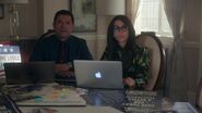 Veronica hires attorney McCoy to represent her in regards to the $1,000,000 Hiram plundered from her. Sierra tells Hiram that Veronica would like it back, but Hiram states that it's in a trust as he's looking out for her future. Given his resistance, Veronica threatens her father. If he doesn't release her funds, she'll start telling his secrets, like the fake Black Hood attacks, Poppa Poutine's murder, the crippling of Nick St. Clair, amongst other things. Veronica vows to expose all his dirty laundry if he doesn't hand her money back over to her. In fear that Veronica will follow through with her threats, Hiram concedes. Meanwhile, Hermione watches from the doorway as this unfolds.