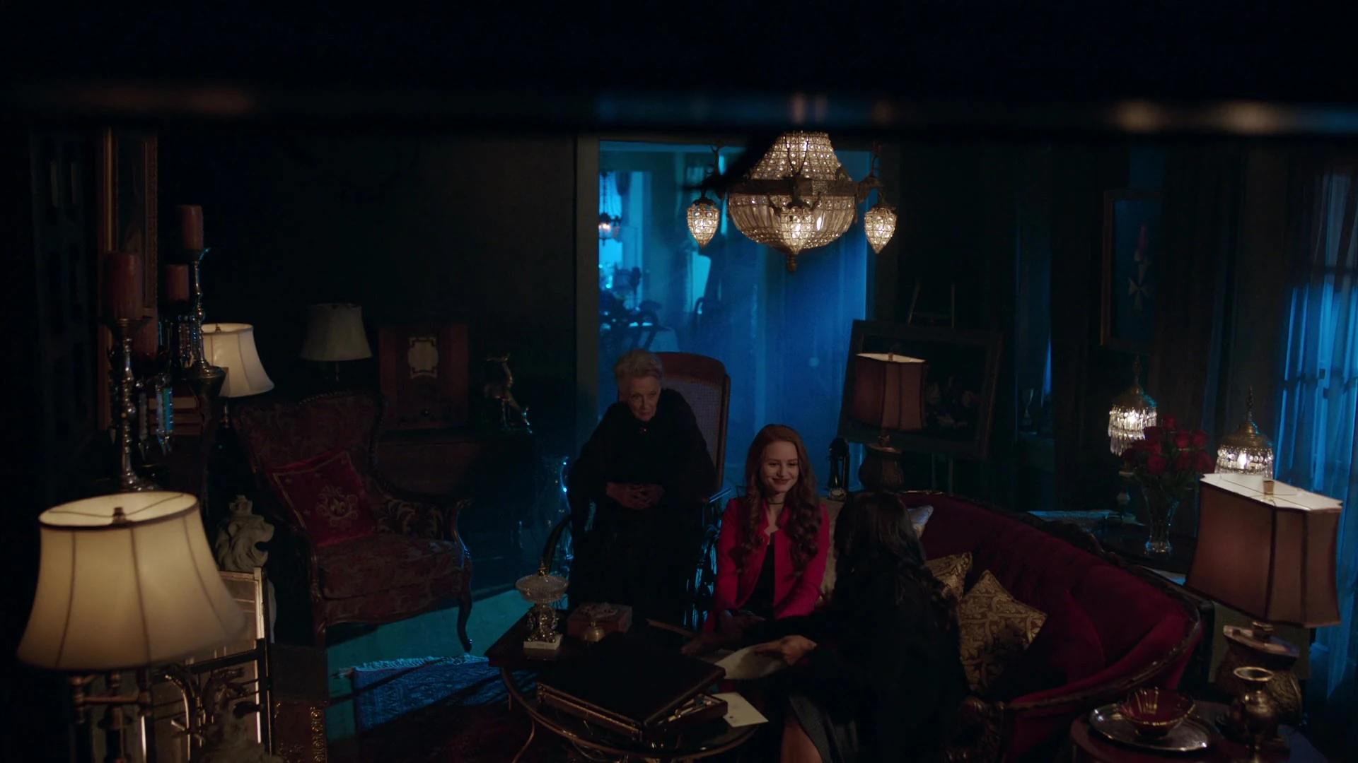 Cheryl has called attorney McCoy over to Thistlehouse to finalize her emancipation from her mother. Nana Rose is now Cheryl's legal guardian, meaning Cheryl's mother and uncle Claudius no longer have any control over her. When Sierra announces her plans to file the papers and send the letter of separation to Penelope, Cheryl volunteers to deliver the letter in person as her mother and uncle are staying on the old Thornhill estate, in one of the barns. Cheryl arrives at the barn to find her mother and uncle in the middle of a clandestine meeting with Hiram Lodge. Cheryl gasps, which Hiram, Penelope and Claudius all hear. Penelope checks outside to investigate, but she sees no one, though that's because Cheryl is hiding in one of the barrels.