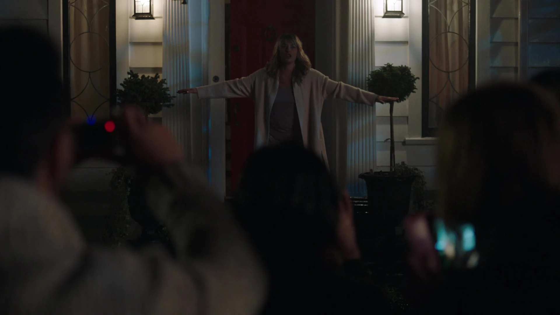 Betty walks home to find her mother standing outside their front door, berating their neighbors, who also stand just outside their house, taking photos and video following the discovery that her father was the Black Hood. Alice entertains the crowd, inviting her neighbors to come in and see where Hal planned all the murders. Betty pushes her way through the crowd, demanding that everyone go home.