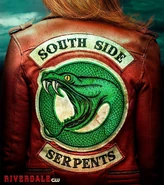 Later that evening, FP calls for a meeting of the Serpents by the lake side. Jughead, Sweet Pea, Fangs, Toni and Cheryl are all in attendance. Along with all the remaining Serpents. More than 60 years ago, the very first Serpent meeting took place on the very same riverbanks in which they stand, FP explains. So it seems fitting that this is where they gather for FP's goodbye. He calls Jughead up onstage to announce that he's retiring from the Serpents, but that Jughead will take his place considering that he's never stopped fighting for the Serpents and almost died for them. Jughead tells FP that he loves him and that the Serpents won't die out while under his leadership. As his first official duty as Serpent King, Jughead is to grant Cheryl membership into the Serpents. He even gifts her with a custom red Serpent jacket. Cheryl puts on the jacket and is welcomed with open arms into the Serpents.