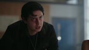 Jughead, Sweet Pea and Toni arrive at the Wyrm. Jughead is disgusted to see what has come of the Serpents, sleeping on the old sofas and eating out of cans. They're almost unrecognizable. The Ghoulies destroyed most of Sunnyside, and a lot of Serpents couldn't afford to leave Riverdale, so they came to the Wrym. Jughead asks if his dad knows about this.