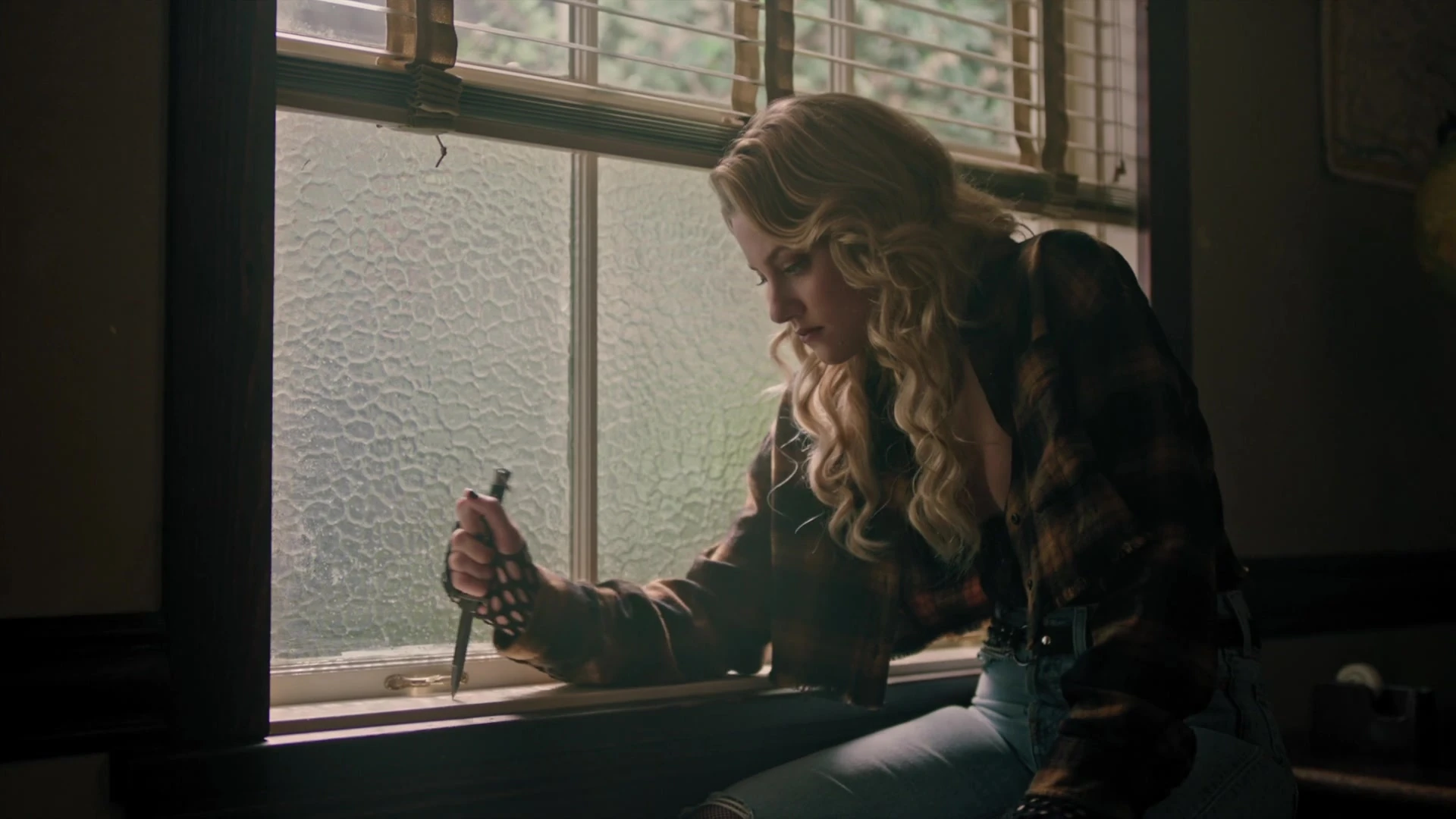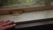Alice carves her name into the window seal